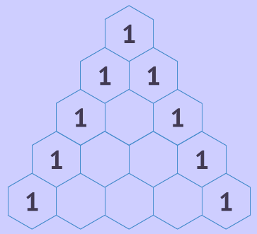 Use the pattern to fill in the missing numbers in pascal's triangle.